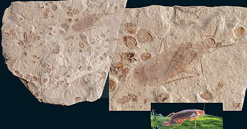 圖中1.25億年的蟑螂化石證明了蟑螂在數億年間沒有進化。 |
