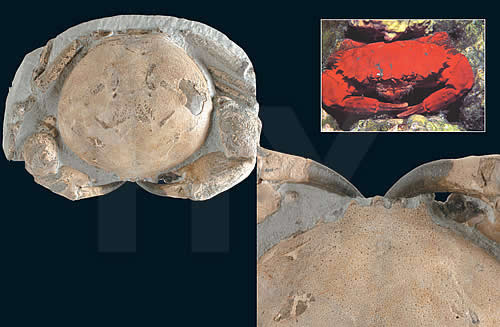 這只2300萬到500萬年的化石中的螃蟹,證明了螃蟹一直就是這個樣子的,沒有發生過進化。這只化石螃蟹和我們今天的螃蟹有著共同的特徵,這表明這些生物都是由真主創造的。 |