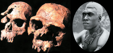 和馬來西亞土的著人一樣, 有的人種至今仍保留著眉骨高、前額低的特徵— — 尤其是“ 直立人”的頭骨。 |
