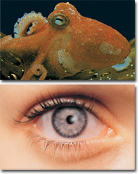 人類和章魚的眼睛結構非常相似。然而,這兩種生物有相似的器官並不表示他們就是從同一個祖先進化來的。即使是進化論者,也不再用共同祖先來說明章魚和人類的眼睛的相似性了。 |