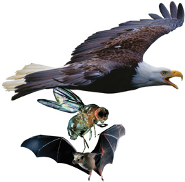 老鷹、蝙蝠和昆蟲都有翅膀。然而,單單擁有相似的器官,並不能證明它們就是從共同的祖先進化來的。 |