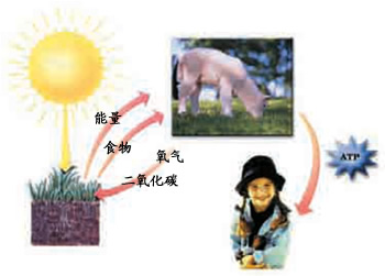 借助於太陽的能量,植物開始進行光合作用,並以此提供動物和人類的能量需求。