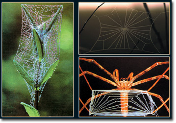 蜘蛛絲中蘊含著非常重要的奇迹。蜘蛛用來織網的絲,其直徑不足千分之一毫米,強度卻要高出一根相同直徑的鋼絲五倍。蜘蛛絲的另一特性就是非常輕,一條長度足以環繞地球一圈的絲,重量只有320克。*鋼是一種工廠特製的産品,是人類生産的強度最高的材料之一。可是,蜘蛛能在體內生産出比鋼更爲牢固的絲。人類製造鋼材時,運用了積累了幾個世紀的知識和技術。蜘蛛吐絲時,又使用哪些知識和技術呢?
