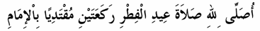 swulli lillahi swalata Eidel-Fitr raka’ataini